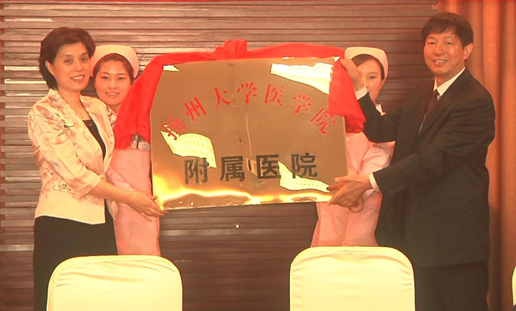 会上,市妇保院院长施庆喜致欢迎辞,扬州大学医学院领导宣读了扬州大学医学院与连云港市妇幼保健院建立附属医院关系的文件,并授予印章,连云港市政府副市长滕雯与扬州大学医学院党委书记马援教授共同为扬州大学医学院附属连云港市妇幼保健院揭牌。自此,市妇保院正式跻身扬州大学医学院附属医院之列,将借助高校医学院的优势资源,依托优质专科医院平台,实现双方在临床诊疗、人才培养、医疗教学、学术研究、科研协作等方面开展全方位的深度合作,进一步提升市妇保院医疗保健学术水平,完善惠及百姓的多层次的教学医疗服务体系。