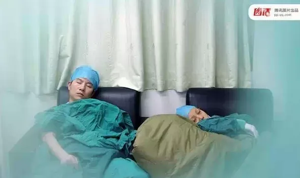 一台在夜间进行的近六个小时的肝移植手术,由两组医生共同完成。孙医生和两位年轻医生完成了第一部分手术后,被替换下台,两个小伙子因疲惫而在手术室打起盹。