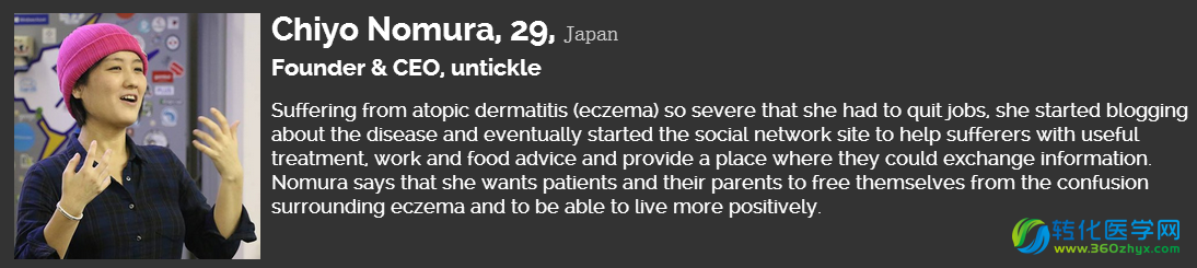 自从湿疹康复之后,Nomura创办了untickle帮助那些患有湿疹的人们,untickle通过社会网络普及湿疹的预防信息,为湿疹病人提供快捷有效的治疗与信息交换服务。