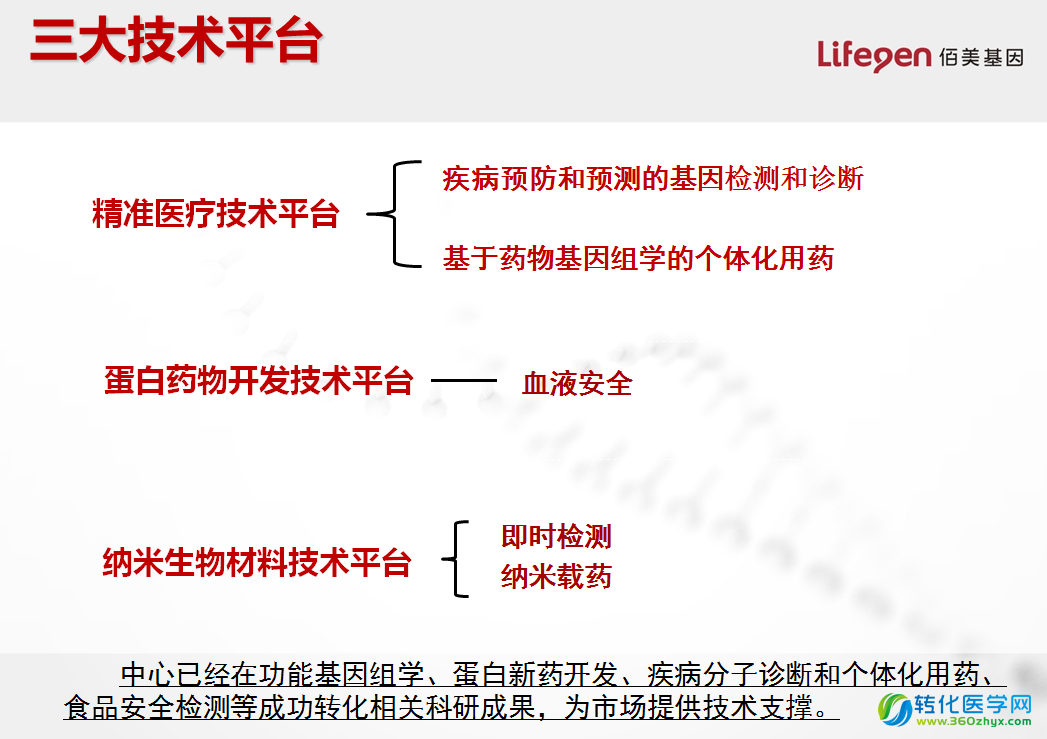 佰美医检所是陕西佰美基因股份有限公司的子公司,而由国家科技部批复成立的国家微检测系统工程技术研究中心(简称“国微中心”),组建14年来,一直依托佰美基因发展,是国家级的现代生物技术产业孵化基地,也是西部地区唯一从事药物基因组学研究和个体化医学转化应用的国家级工程技术研究中心。拥有精准医疗、纳微米生物磁性材料、蛋白药物开发等技术平台。