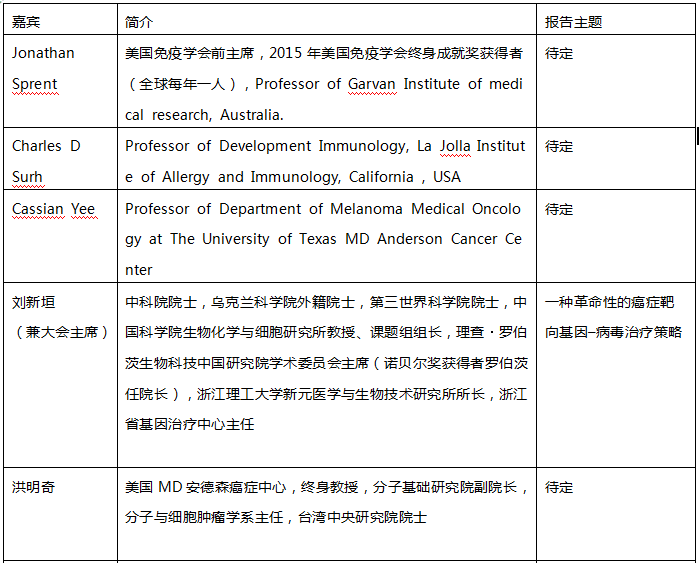 大会主题肿瘤免疫细胞治疗、干细胞治疗(内容涉及免疫检验点抗体、肿瘤基因检测、溶瘤病毒、基础免疫学)
