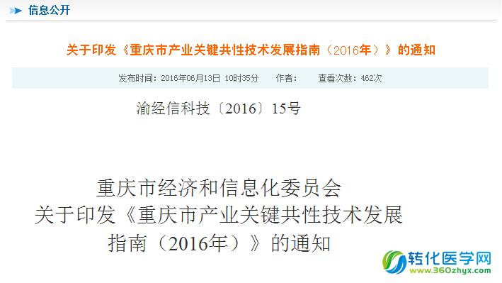 【地方政策快讯】重大疾病生物治疗关键共性技术(干细胞、免疫细胞)入选2016年《重庆市产业关键共性技术发展指南》