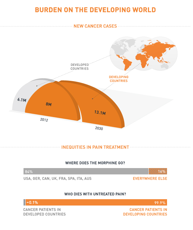 数据显示99.9%的发展中国家癌症患者在死亡过程中忍受着异常的痛苦而得不到治疗。