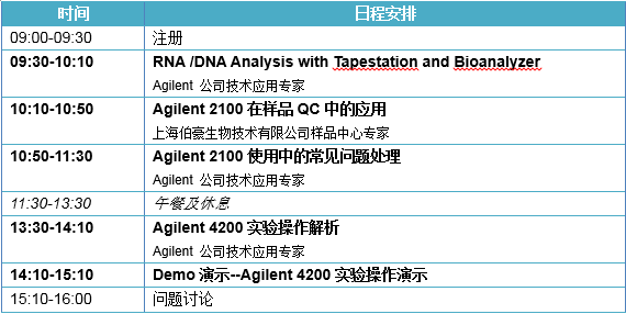应广大客户要求,为普及Agilent全自动化电泳解决方案,促进用户的使用体验和经验交流,我们将于4月21日举办“2017年度Agilent 2100/4200用户交流会”。届时还会现场推出相关试剂产品打折优惠促销。