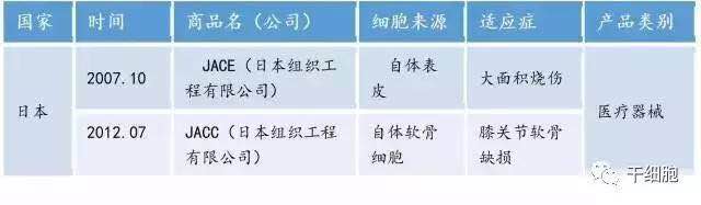 表3、亚洲已经上市的干细胞产品
