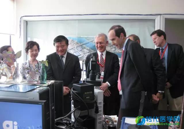 陈竺院士和陈赛娟院士邀请参加中美临床与转化医学国际论坛专家参观实验室。专家包括研发格列卫抗癌药的Brian Druker教授,美国内科学会主席Harry Salker教授,后来出任FDA局长的Robert Califf,以及NIH临床研究中心院长John Gallin等。