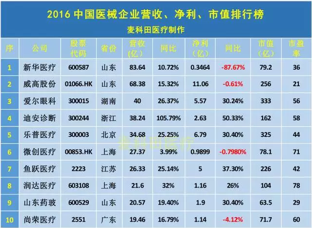最新出炉!中国医械企业营收、净利、市值排行榜!