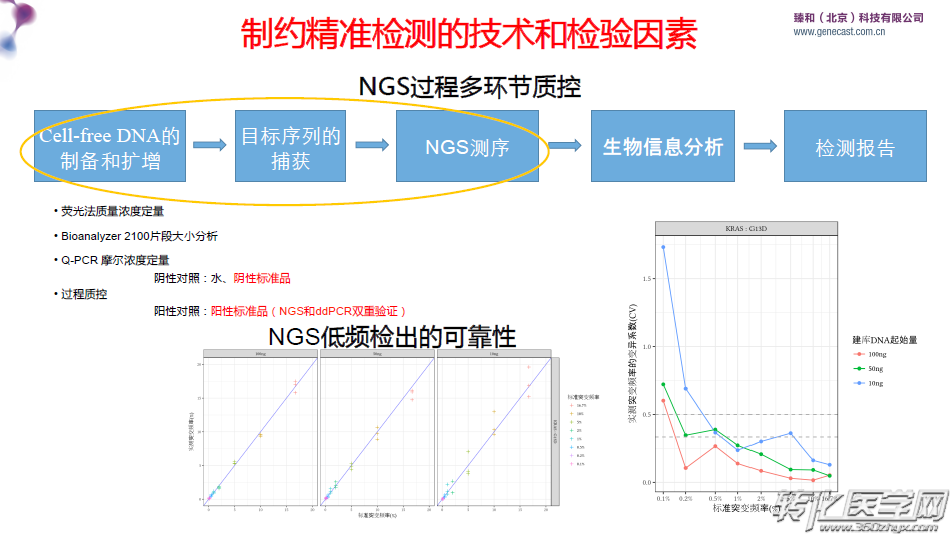 1. 在基于NGS的肿瘤液体活检临床中,制约精准检测的因素归纳为:技术,检验,数据和医学。
