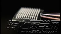 为了达到这一目的,科学家们先将药物装进直径约为250纳米的纳米颗粒中,然后,这些纳米颗粒被装进包含大量微针(microscopic needles)的一平方厘米大小的贴片上(如下图)。当被贴到皮肤上时,这些微针会无痛地刺入皮肤中,逐步从纳米颗粒中释放药物到下面的组织中。