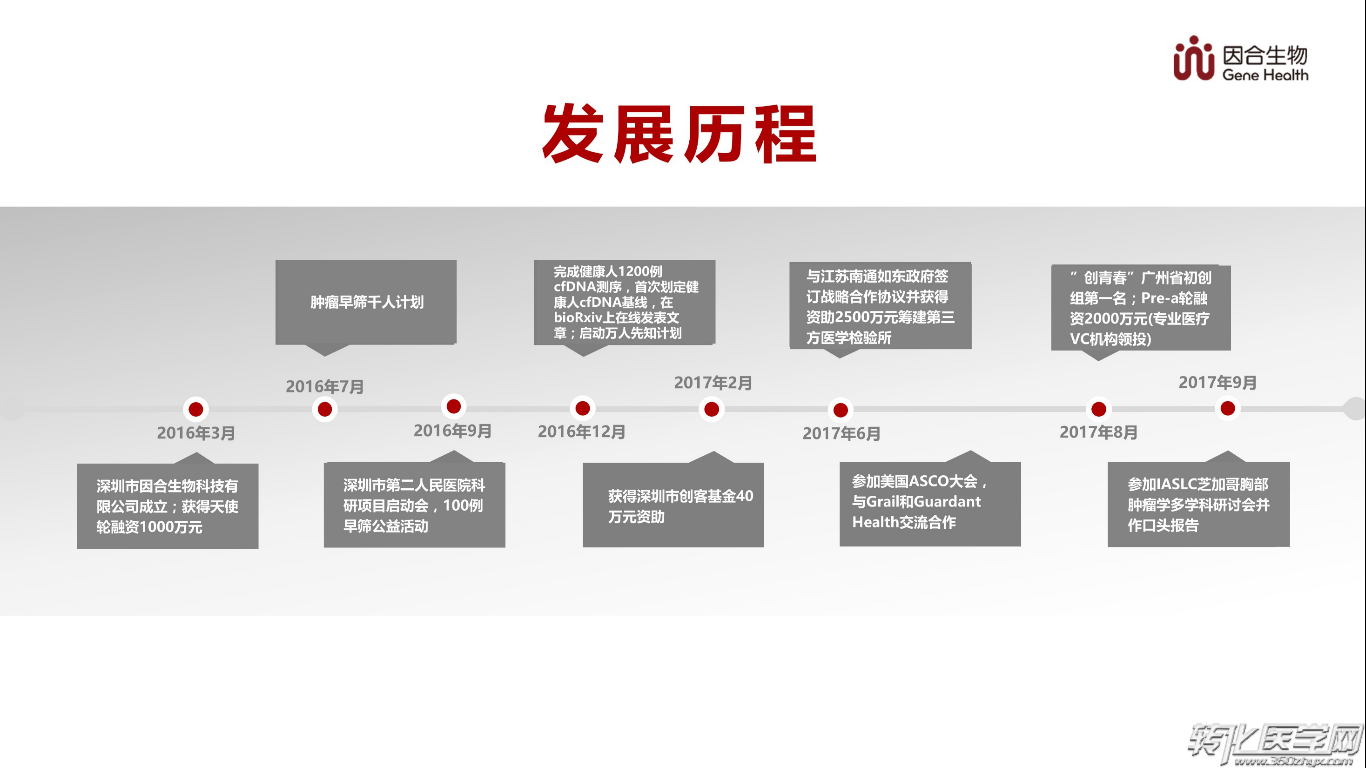 因合生物简介:深圳因合生物科技有限公司(Shenzhen Gene Health Bio Tech Co., Ltd.)成立于2016年3月,由来自于美国斯坦福大学、莱斯大学、香港大学和南方科技大学等全球著名学府的国际化人才团队共同创办,总部位于创新人才聚集地深圳,是一家致力于肿瘤早期检测的基因测序高新技术企业。