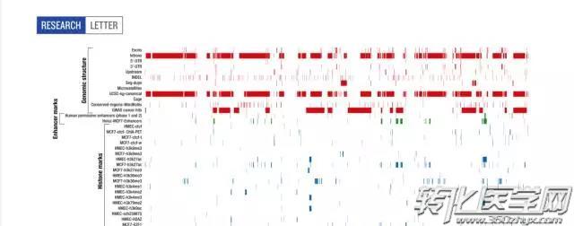 这些基因座中的大部分可信危险单核苷酸多态性落在远端调控元件中,并通过计算机进行数据整合和预测靶基因在乳腺细胞中的作用,研究人员展示了候选靶基因和乳腺肿瘤体细胞驱动基因之间的强烈重叠效果。