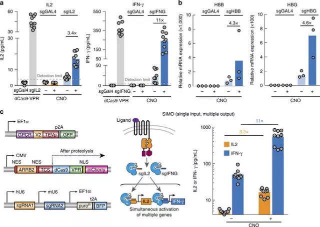 Qi和他的团队则专注于利用GPCRs作为一个普通的合成装置,这弥补了先前内源性基因无法表达的缺陷,可以响应不同的配体。在本次实验中,研究人员通过CRISPR-dCas9技术利用GPCR来将细胞外信号感测转换为程序化的转录反应。