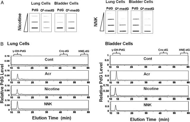 尼古丁和NNK在培养的人肺和膀胱上皮细胞中诱导γ-OH-PdG和O6-medG