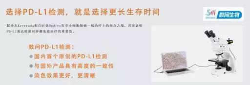 数问生物在国内率先推出首个原创的PD-L1诊断检测,通过各个检测步骤的深度优化,达到了与国外知名试剂盒高度的一致性(在100例的样本检测中,总体一致性达到了99%),还被证明拥有比国外产品更好的染色效果,可以帮助临床医生更清晰的判断肿瘤组织中PD-L1的表达状态,从而为合适的患者准确筛选更为合适的治疗方案。同时,数问生物高品质的PD-L1试剂盒和检测服务已经被多家著名领先制药公司用于抗PD-1免疫治疗药物的数十个临床试验,为中国的肿瘤免疫治疗药物开发贡献力量。