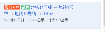 公交约1小时,打车约67元