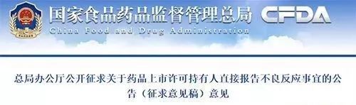 总局办公厅公开征求关于药品上市许可持有人直接报告不良反应事宜的公告(征求意见稿)意见