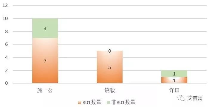 许田的单个R01含金量要远高于其他两位,这其实是由于R01可以基于第一个原始项目而根据实验进展进行重新修正、更新、扩充研究内容而继续获得资助,而许田正属于这种情况。