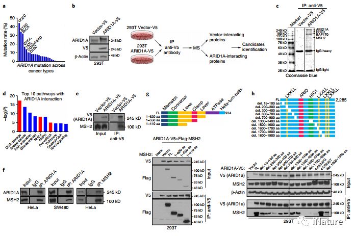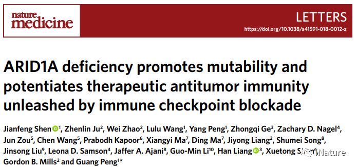 iNature:2018年5月7日,华中科技、美国德克萨斯州大学彭广课题组等人在Nature Medicine上在线发表了题为"ARID1A deficiency promotes mutability and potentiates therapeutic antitumor immunity unleashed by immune checkpoint blockade"的文章,该研究发现染色质重塑因子ARID1A与MMR蛋白MSH 2相互作用。ARID1A对MMR和突变有调节作用,这可能是其抑瘤作用的原因之一。为扩大SWI / SNF通路突变肿瘤患者免疫检查点阻滞的应用提供了机制基础。