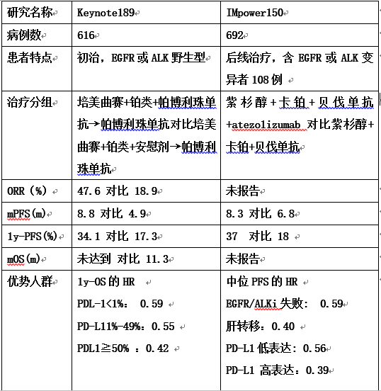 Keynote-189 和IMpower-150研究的启示