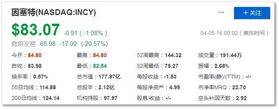 ▲Incyte公司的股价大跌