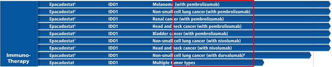 ▲Incyte公司IDO抑制剂的管线(图片来自Incyte官网)