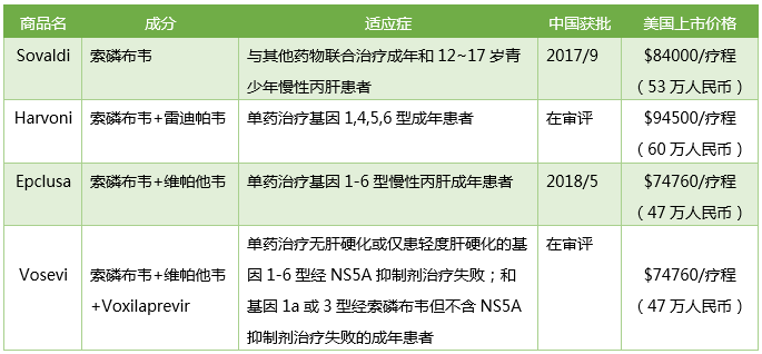 表1 吉利德的丙肝新药
