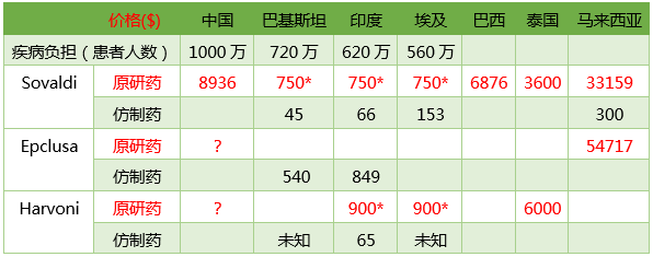 表2 吉利德丙肝药物各国定价