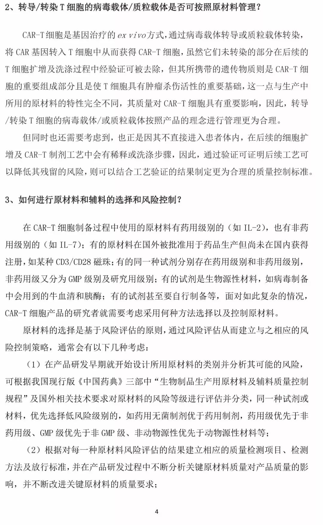 近日,中国食品药品检定研究院正式发布了《CAR-T细胞治疗产品质量控制检测研究及非临床研究考虑要点》》(以下简称《考虑要点》),对CAR-T细胞治疗产品的适用范围、原材料和辅料的及其质量控制、病毒转导载体及质粒转染载体制备及质量控制等多方面进行了规定。