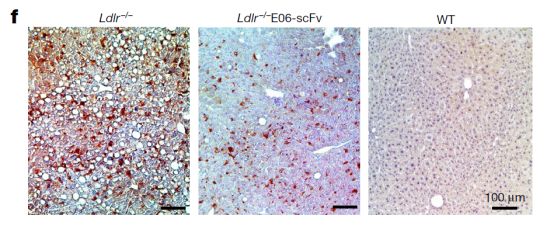通过给与这些转基因小鼠和普通小鼠高脂饮食,研究人员试图发现氧化磷脂与动脉粥样硬化之间的关系。结果显示,与对照组相比,能够表达抗氧化磷脂抗体的小鼠罹患动脉粥样硬化的概率低28%-57%。同时该抗体能够明显减少瓣膜钙化、脂肪肝和肝脏炎症的发生。