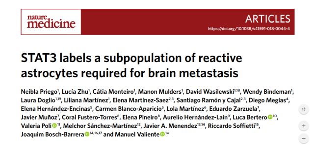 研究显示,一些转移细胞会激活STAT3基因通路。 STAT3基因的激活在反应性星形胶质细胞亚群中是显著的,其对于建立转移性肿瘤微环境至关重要。