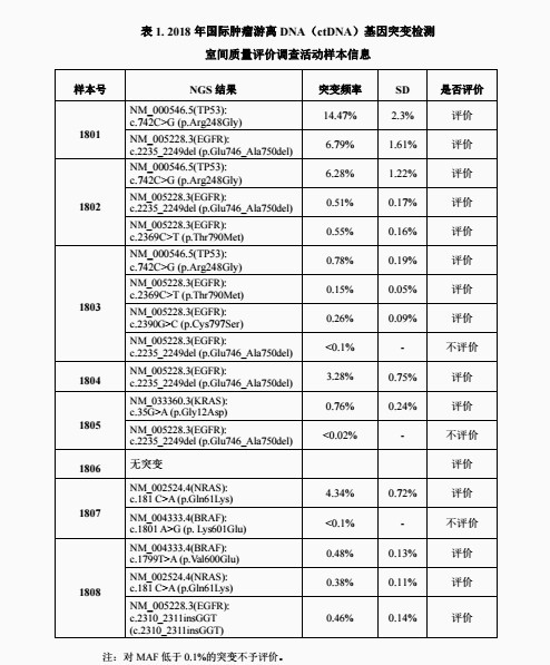 2018国际肿瘤游离DNA(ctDNA)基因突变检测室间质量评价项目