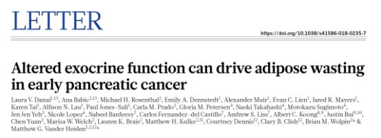 Laura V. Dana. Ana Babic, Michael H. Rosenthal, Emily A. Dennstedt, Alexander Muir. Altered exocrine function can drive adipose wasting in early pancreatic cancer