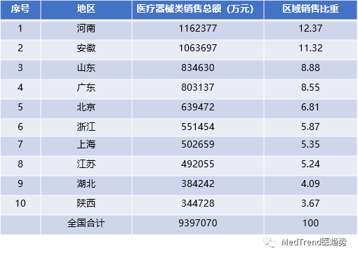 【医械】最新!商务部数据:31省医械销售额排行榜,河南夺冠