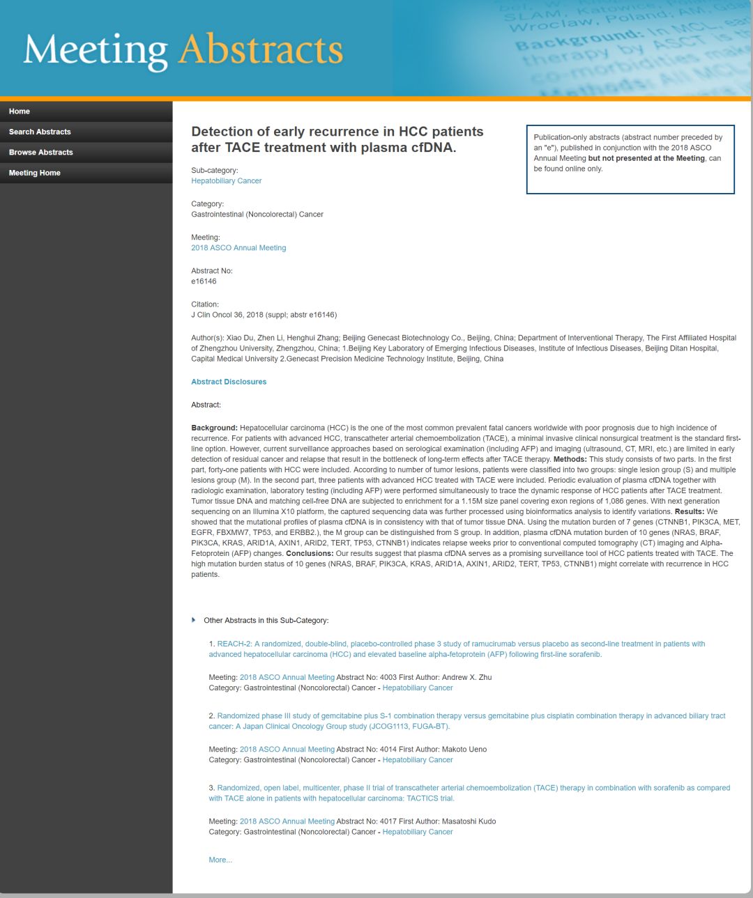 ASCO 2018 | (十)血浆cfDNA对经TACE治疗的肝癌患者残癌复发的早期预警价值