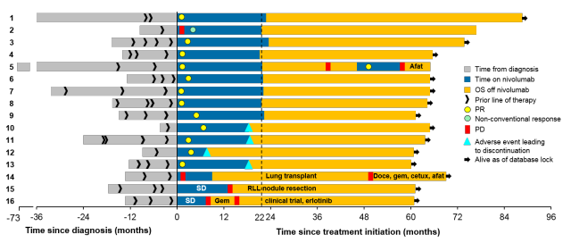 长期生存:目前肺癌免疫治疗随访时间最长的生存数据来自nivolumab的CA209-003研究,其5年随访结果显示,nivolumab单药治疗经治晚期NSCLC患者的5年生存率高达16%,相对于传统治疗提高了3倍。