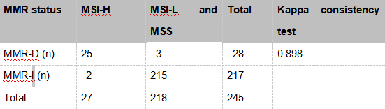 1. MMR蛋白表达与MSI的相关性比较