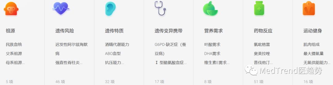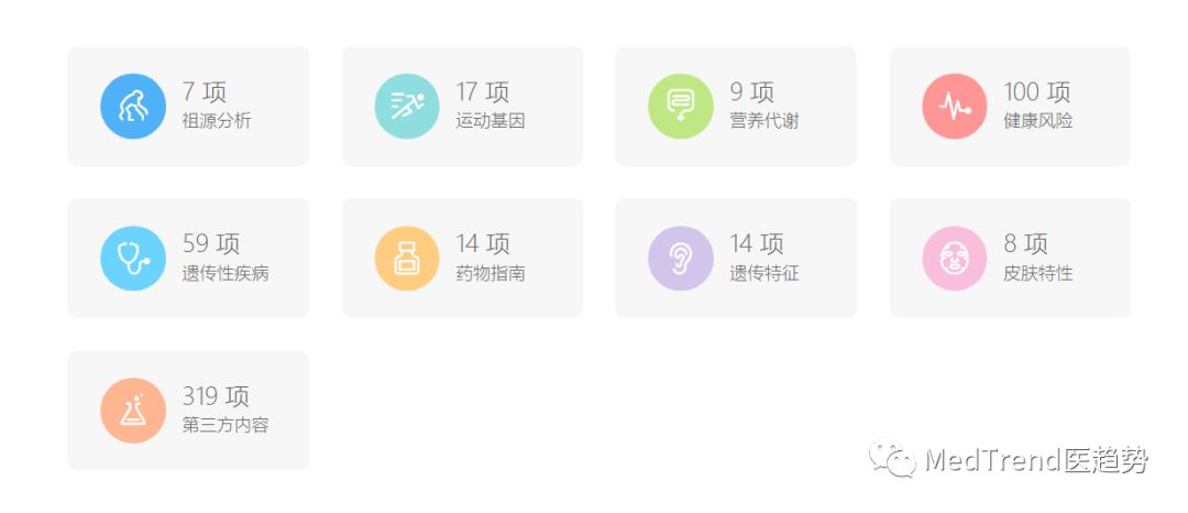 检测项目类似,包括祖源、运动健康、遗传风险等;