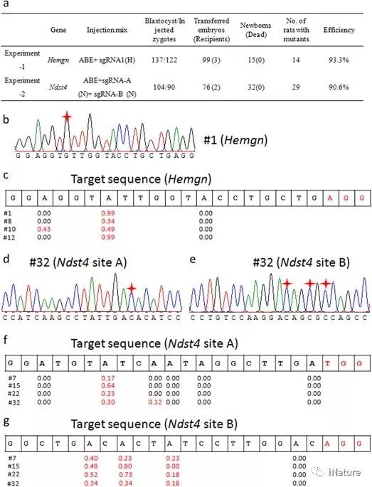 最近,同一组人开发了一种新的dCas9引导的tRNA腺苷脱氨酶,该酶能诱导A·T向G·C转换。与CBE一起,ABE能够在目标基因组序列12中引入所有四个核苷酸转变(C到T,A到G,T到C,G到A)。与野生型CRISPR/Cas9系统相比,这些基础编辑工具为人类疾病的基因校正提供了一种更为安全的方法。本文报道了这种新开发的腺嘌呤碱编辑器在大鼠碱基编辑中的应用。