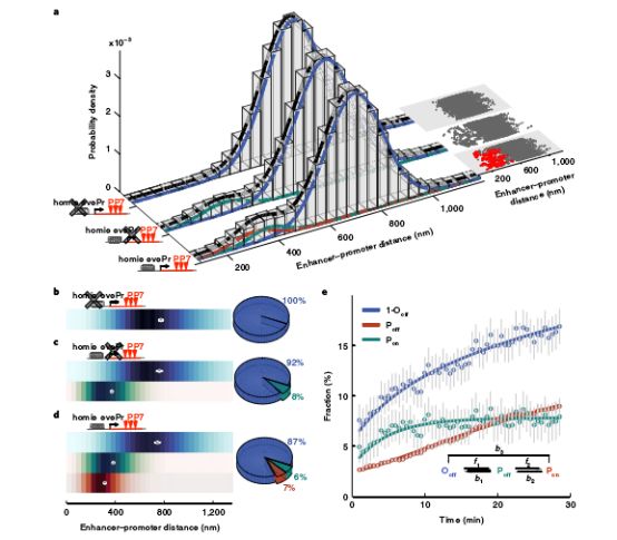 通过实时成像视频,研究人员发现基因的激活转录的首要条件就是实现增强子和基因间的物理接触,这种物理接触使增强子与靶基因的启动子紧密结合,从而大大增强启动子的活性。