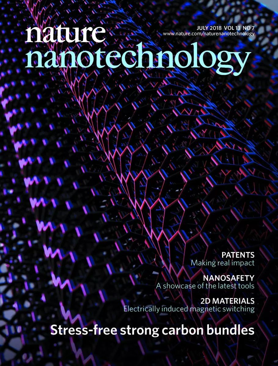 清华大学的白云祥和张如范等人采用同步张弛策略,成功解决碳纳米管的初始应力分布不均匀的问题,开发出了一种厘米级超长碳纳米管管束,将其拉伸强度提高到80GPa以上。封面所示为一个由许多单体碳纳米管组成的阵列式无缺陷超长管束的艺术想象图。