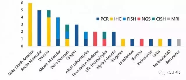 FDA批准的肿瘤伴随诊断产品平台分布情况