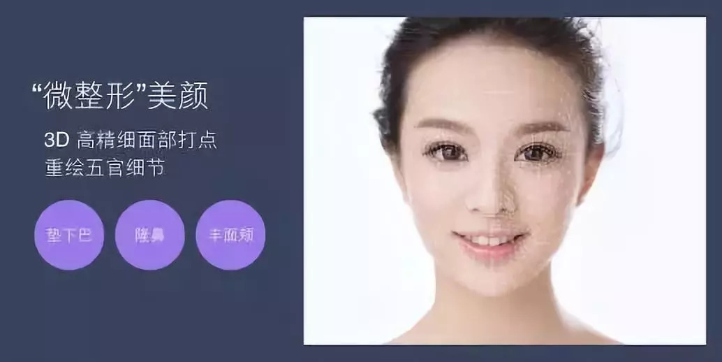 还有美图,他们的美图影像实验室设计了品类繁多的“变脸”技术,比如结合人脸大数据黄金比例算法调节用户身材、人脸网格实时视频图像上妆等等。