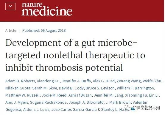 抑制血栓形成:一种靶向肠道微生物的全新疗法