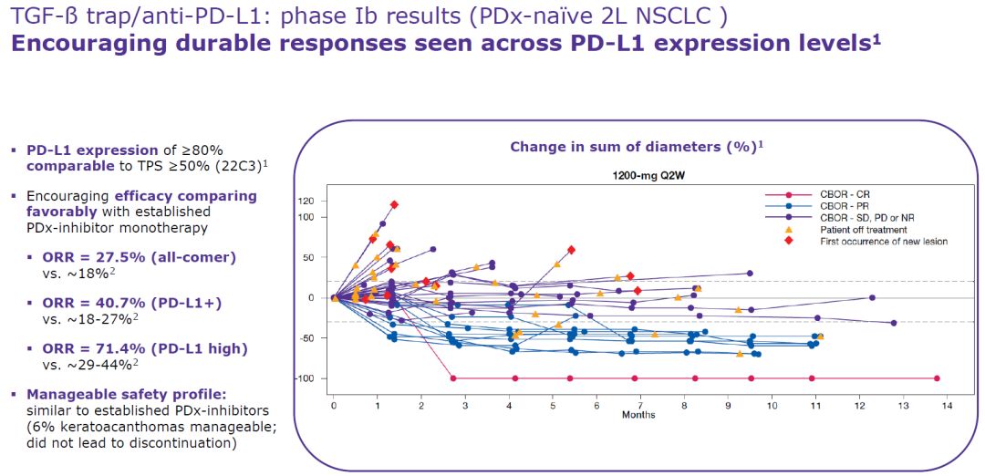 在PD-L1阳性患者中,M7824的有效率高达40.7%,而PD-1一般只有18-27%