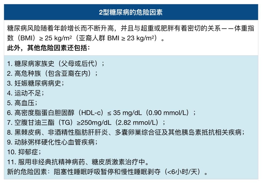 除了这10条指导原则之外,文件中还有许多有价值的表格及总结值得我们关注,包括糖尿病的危险因素、糖尿病的筛查和诊断标准、糖化血红蛋白(HbA1c)与血糖的换算等——简直是一文在手,高招我有!