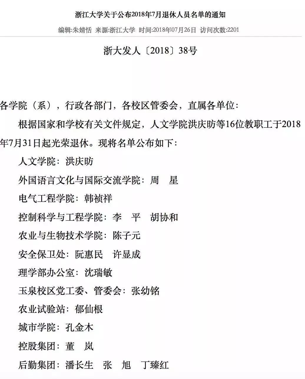 除了浙大外,贵州大学同样了发布了院士退休的消息。2018年7月30日,贵州大学发布《关于马克俭同志退休的通知》,中国工程院院士马克俭达退休条件,经研究同意退休。