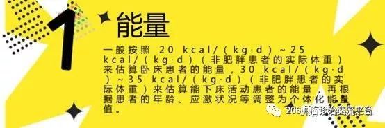 举个例子,30岁正值青壮年的病人老王,体重130斤,卧床不动,那应该每天摄入2600-3250kcal热量的食物。能下床活动,则需要3900-4550kcal。