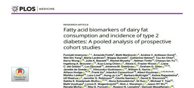 Fumiaki ImamuraI, Amanda Fretts Fatty acid biomarkers of dairy fat consumption and incidence of type 2diabetes: A pooled analysis of prospective cohort studies
