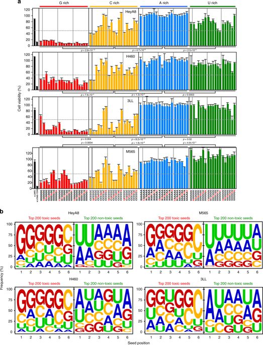 研究人员找到了6种对癌细胞有巨大毒性的miRNA序列,其中G富集的序列癌细胞毒性最强,这种序列有助于siRNA朝向5'末端靶向SGs,这些序列,就是肿瘤抑制性miRNA。研究人员发现,这些序列激活后,只消灭癌细胞!这就彻底解决了癌症治疗中副反应的问题。