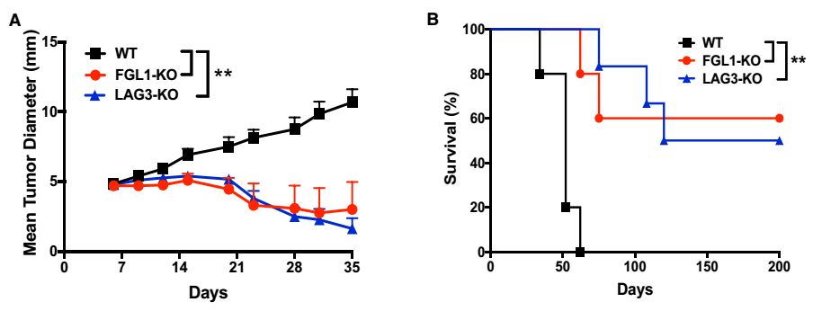 在LAG-3或FGL1基因敲除的小鼠移植肿瘤后,发现肿瘤生长明显受到了抑制。这说明FGL1- LAG-3通路确实在肿瘤的发展中发挥了作用。